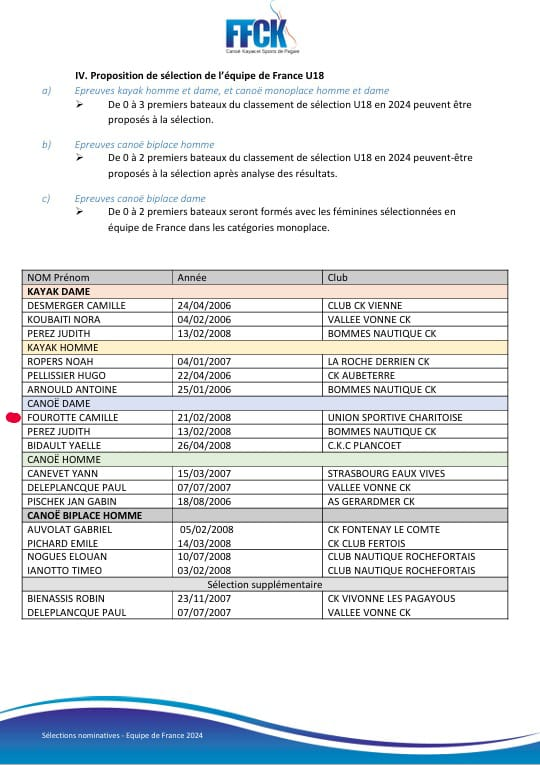 La sélection des équipes de France Descente est sortie, Camille Fourotte du club de l'Union Sportive Charitoise est sélectionnée pour représenter la France sur les échéances internationales de la saison.